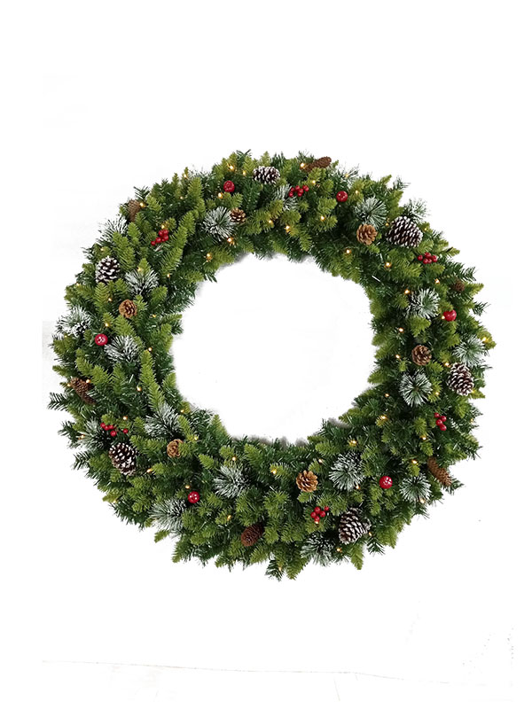 تاج گل کریسمس با تزئین مخروط کاج غنی-WD21120